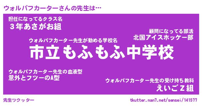 | ファンタジー風あだ名 | 『ウォフェル』『ファントムウォス』 |