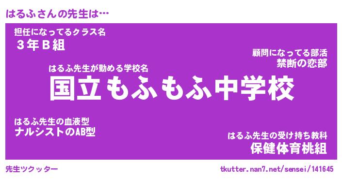 | ポケモン風あだ名 | 『ハルチュウ』『ハルフダネ』 |