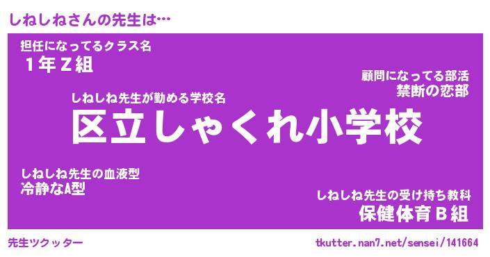 | ヘコむあだ名 | 『しねっふぃ~』『牛乳』『しねお』 |