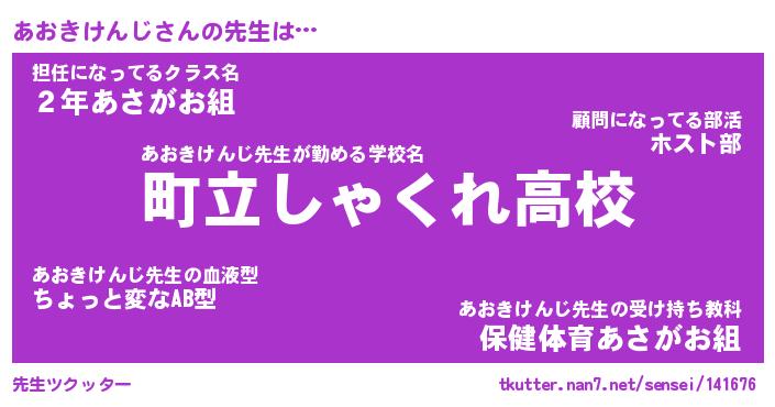 | ヒーロー風カッコイイあだ名 | 『スーパーアオキケンジ』『銀牙騎士アオ』 |