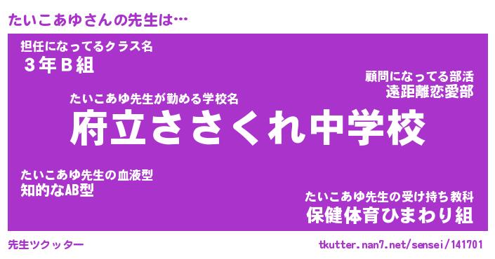 | ファンタジー風あだ名 | 『タイフェル』『エターナルタイコアユー』 |