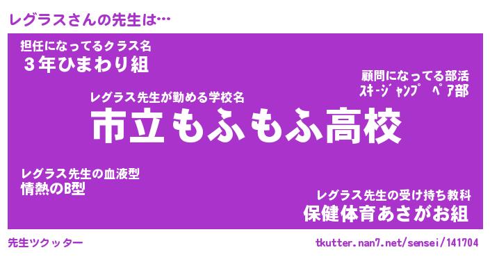 | 意味不明あだ名 | 『ペロリンレグラス』『永久保存レグラス』 |