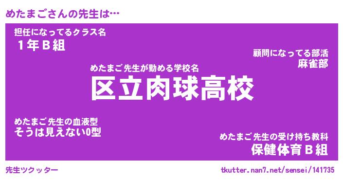 | 意味不明あだ名 | 『ペロリンめたまご』『永久保存めたまご』 |