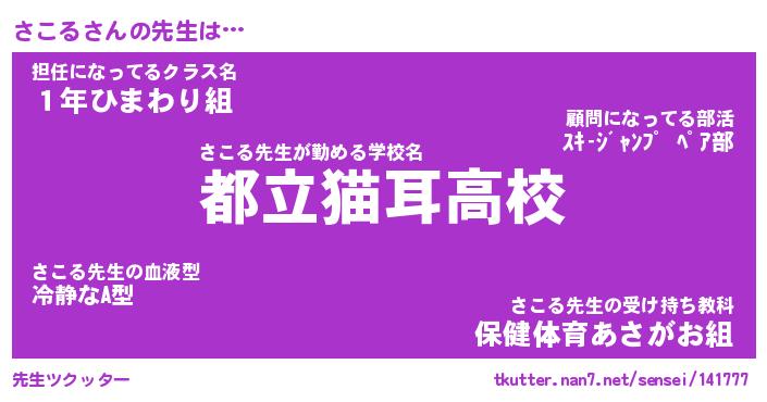 | ファンタジー風あだ名 | 『サコフェル』『エターナルサコルー』 |