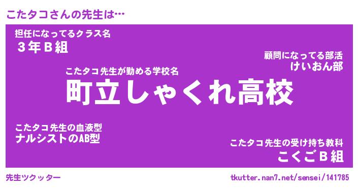 | 意味不明あだ名 | 『ペロリンこたタコ』『永久保存こたタコ』 |