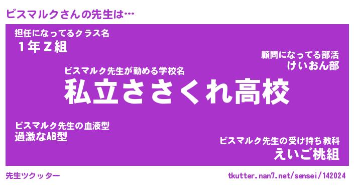 | ヘコむあだ名 | 『ビスもー』『つくし』『ビスぷりん』 |