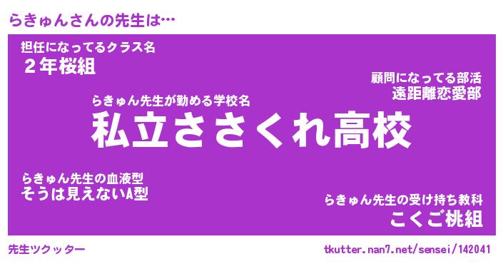 | ヘコむあだ名 | 『らきもー』『豆乳』『らきぷりん』 |