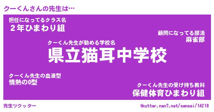 | ファンタジー風あだ名 | 『クーフェル』『エターナルクークンー』 |