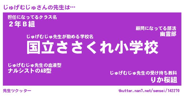 | ポケモン風あだ名 | 『ジュチュウ』『ジュゲダネ』 |