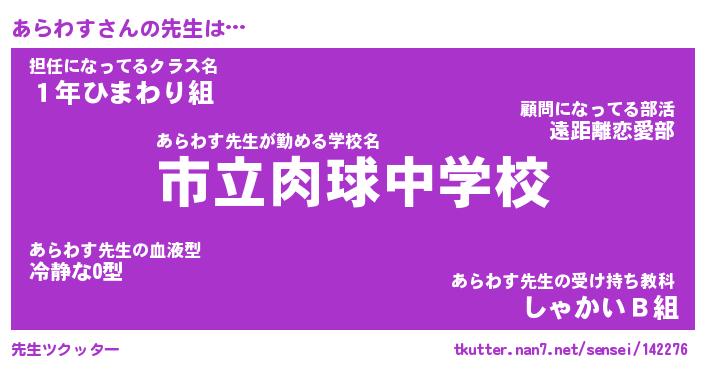 | ヘコむあだ名 | 『あらふぇ~』『つくし』『あらを』 |