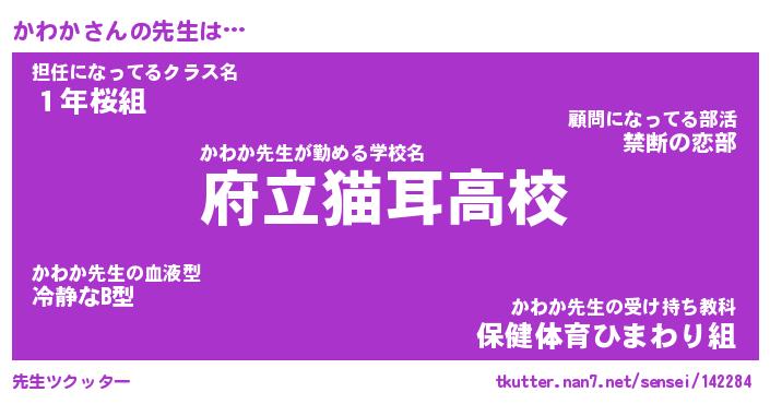 | ヘコむあだ名 | 『かわにー』『牛乳』『かわ太郎』 |