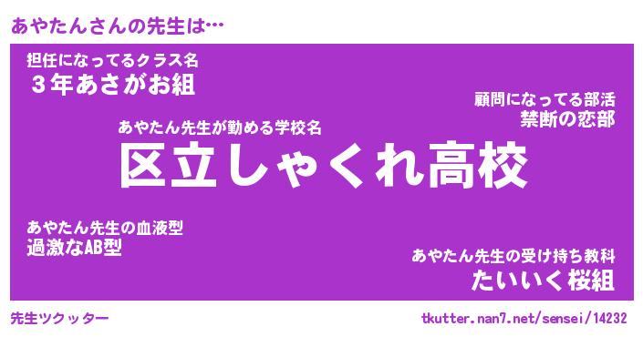 | 意味不明あだ名 | 『ペロリンあやたん』『永久保存あやたん』 |