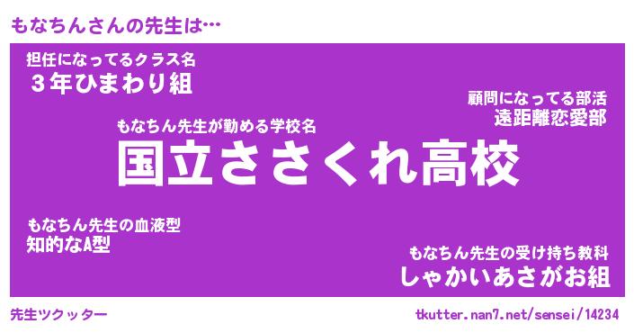 | 欧米人風あだ名 | 『マイケルもなちん』『ウサインもなちん』 |