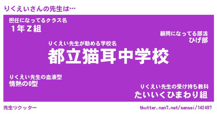 | 意味不明あだ名 | 『ペロリンりくえい』『永久保存りくえい』 |