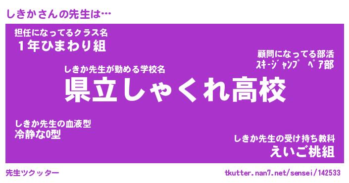 | ファンタジー風あだ名 | 『シキフェル』『エターナルシキカー』 |