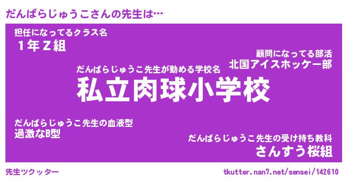 | 胡散臭い通販商品みたいなあだ名 | 『必ず成功するブレスレット…その名も「だんばらじゅうこ」』 |