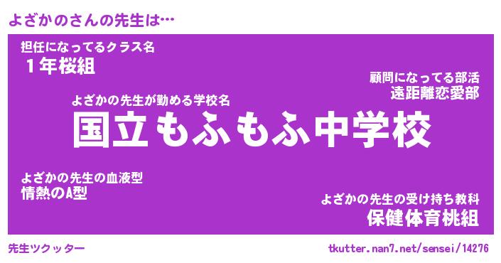 | 意味不明あだ名 | 『ペロリンよざかの』『永久保存よざかの』 |