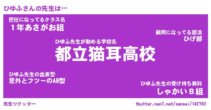| ファンタジー風あだ名 | 『ヒユフェル』『エターナルヒユフー』 |