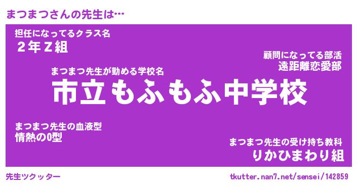 | ファンタジー風あだ名 | 『マツフェル』『エターナルマツマツー』 |