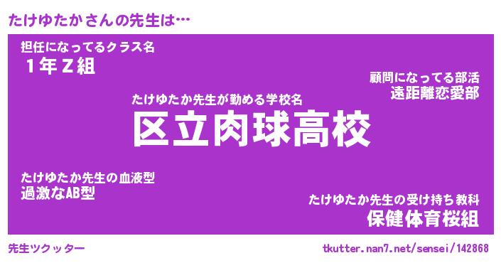 | ファンタジー風あだ名 | 『タケフェル』『エターナルタケユタカー』 |
