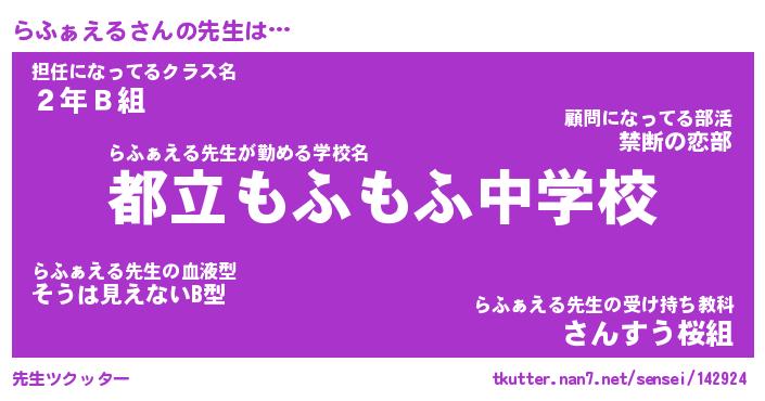 | 肩書あだ名 | 『らふぁえる店長』『らふぁえる総理大臣』 |
