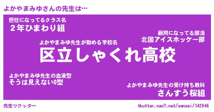 | 伝説のあだ名 | 『封印されしスナイパーよかやまみゆ』 |