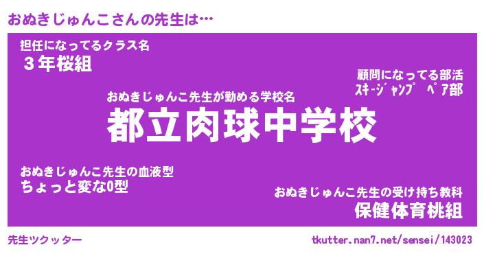| 女子向けラノベタイトル風あだ名 | 『おぬきじゅんこ姫と円卓の騎士』 |