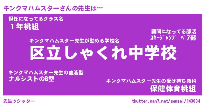 | 欧米人風あだ名 | 『マイケルキンクマハムスター』 |