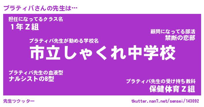 | 男性向けラノベタイトル風あだ名 | 『プラティバの憂鬱』 |
