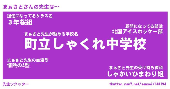 | 意味不明あだ名 | 『ペロリンまぁさと』『永久保存まぁさと』 |