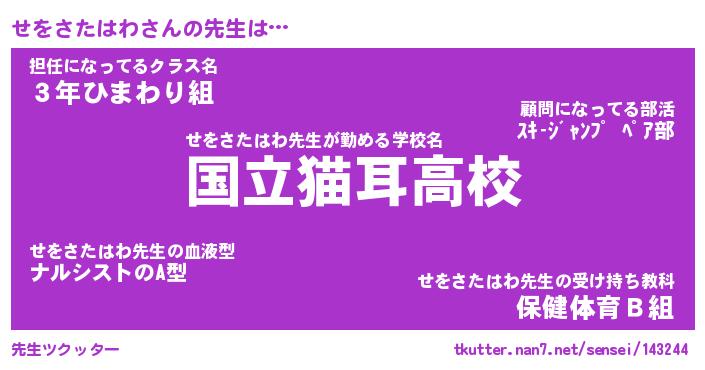 | ポケモン風あだ名 | 『セヲチュウ』『セヲサダネ』 |