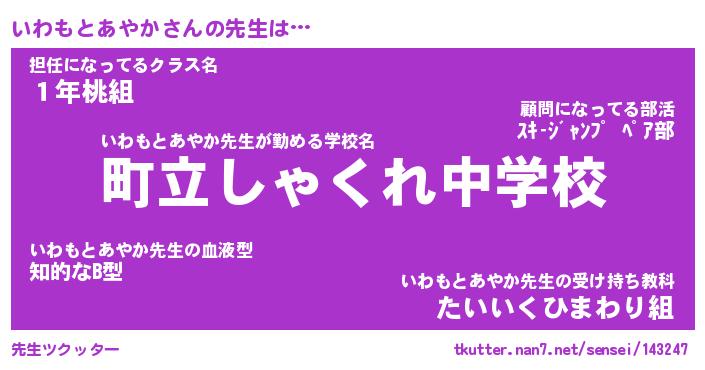 | 伝説のあだ名 | 『封印されしスナイパーいわもとあやか』 |