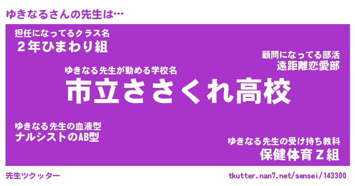 | ファンタジー風あだ名 | 『ユキフェル』『エターナルユキナルー』 |