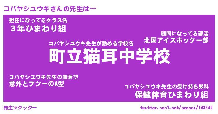 | ヘコむあだ名 | 『コバにー』『レバニラ』『コバ太郎』 |