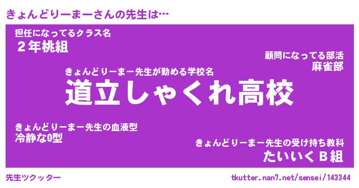 | 伝説のあだ名 | 『不死鳥のスナイパーきょんどりーまー』 |