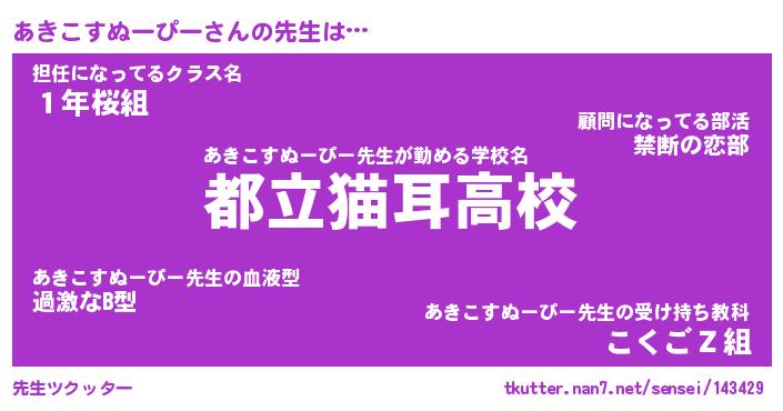 | 欧米人風あだ名 | 『マイケルあきこすぬーぴー』 |