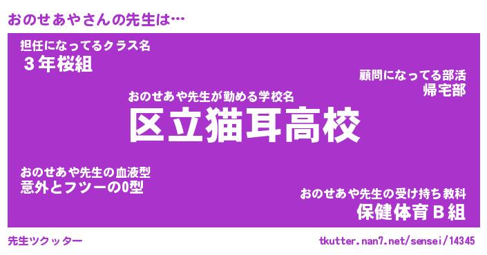 | ファンタジー風あだ名 | 『オノフェル』『エターナルオノセアヤー』 |