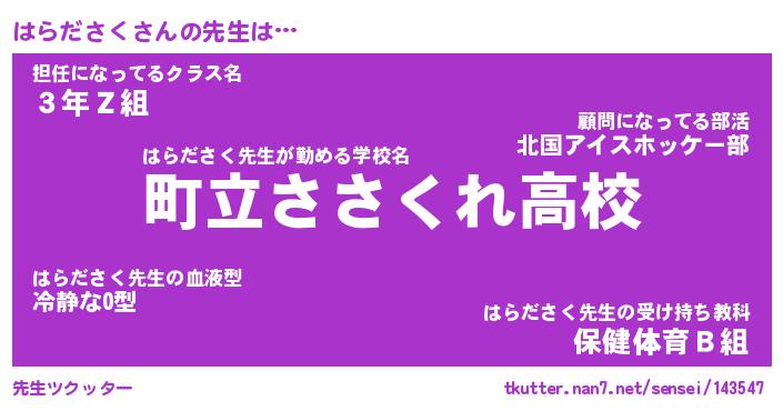 | ファンタジー風あだ名 | 『ハラフェル』『エターナルハラダサクー』 |
