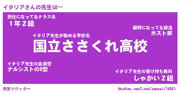 | ファンタジー風あだ名 | 『イタフェル』『エターナルイタリアー』 |