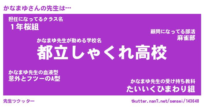 | 意味不明あだ名 | 『ペロリンかなまゆ』『永久保存かなまゆ』 |