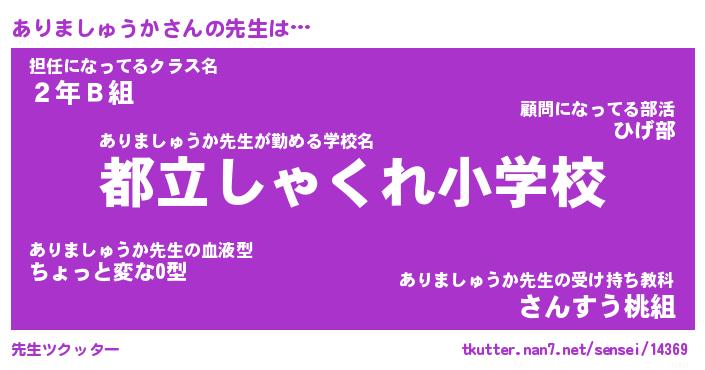 | ヒーロー風カッコイイあだ名 | 『スーパーアリマシュウカ』 |