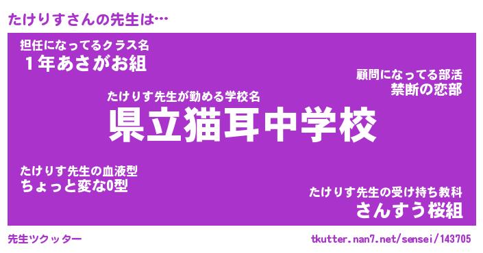 | ファンタジー風あだ名 | 『タケフェル』『エターナルタケリスー』 |