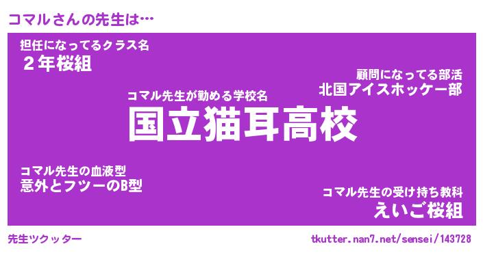 | ファンタジー風あだ名 | 『コマフェル』『エターナルコマルー』 |