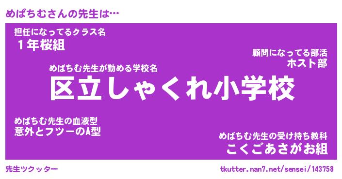| ファンタジー風あだ名 | 『メバフェル』『エターナルメバチムー』 |
