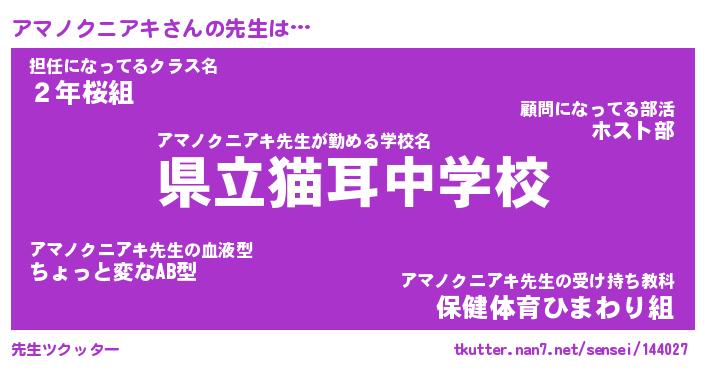 | 意味不明あだ名 | 『ペロリンアマノクニアキ』 |