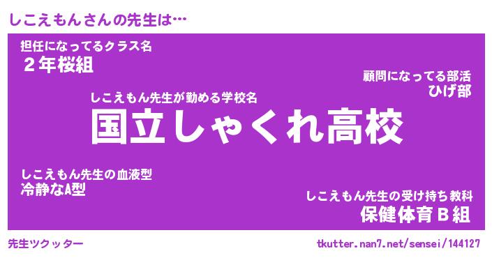 | ファンタジー風あだ名 | 『シコフェル』『エターナルシコエモンー』 |