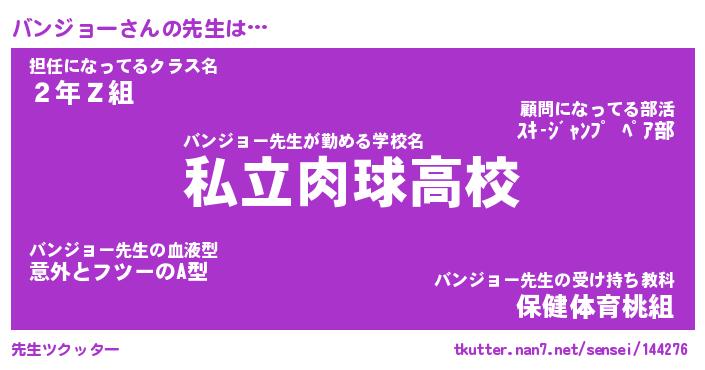| ファンタジー風あだ名 | 『バンフェル』『エターナルバンジョーー』 |