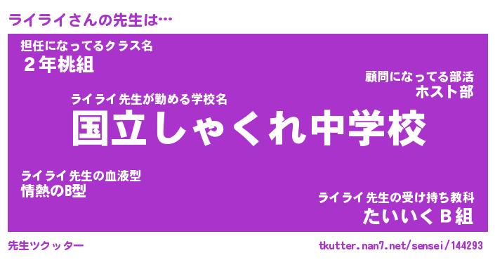 | ヒーロー風カッコイイあだ名 | 『スーパーライライ』『幻影騎士ライ』 |