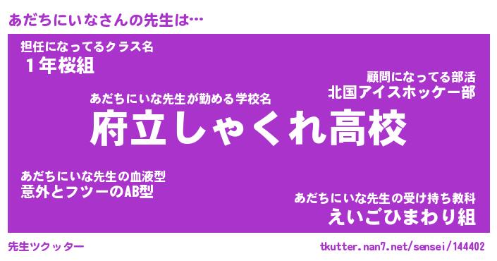 | ポケモン風あだ名 | 『アダチュウ』『アダチダネ』 |