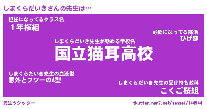 | ヘコむあだ名 | 『しまにー』『つくし』『しまっちょ』 |